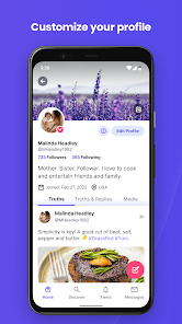 Perfil: expresa tu personalidad única configurando un perfil, un avatar y un fondo. Comienza a realizar un seguimiento de tus conexiones personales a través de los recuentos de seguidores y seguidores, así como del historial de tus publicaciones y me gusta.
