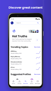 Compón Truths Deja que tu voz sea escuchada. Regístrate, únete a la conversación y comparte tu opinión única publicando un enlace de Verdad, ReVerdad, foto, noticia o video para comunicarte con tus amigos, clientes y el mundo. Mantente informado sobre las noticias de última hora mientras te mantienes conectado directamente con las personas que te influencian. ¡No te sorprendas si viralizan tu Verdad