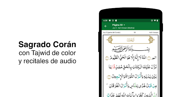 • Tajwid de colores para ayudarle a mejorar la pronunciación al leer el Corán