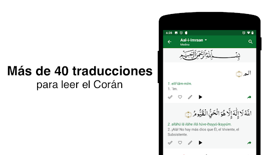 • Aplicación y Corán completamente traducidos al Bahasa Indonesia, Bahasa Melayu, Deutsch, English, Español, Français, Italiano, Nerderlands, Português, Türkçe, العربية, اردو, русский, 简体中文, 日本語, ภาษาไทย