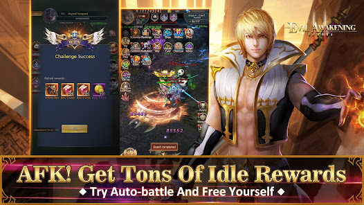 Inactivo en cualquier momento en Evil Awakening II: Erebus, juega en cualquier lugar GRATIS. Los héroes lucharán automáticamente cuando estés AFK. Solo espera y relájate y serás recompensado con una gran cantidad de tesoros.