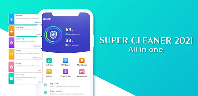 Super Cleaner is multipurpose app for your device maintenance. It is designed to increase battery life with smart power saving modes. It clears the junk data and unwanted background running processes which makes phone fast. With temperature control you can initiate cooling effect as well.