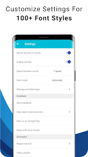 Deje de lado su vieja rutina de mensajes de texto e introduzca el dinamismo que tanto necesita en sus estilos de texto utilizando fuentes, símbolos y letras geniales. La nueva aplicación de fuentes con estilo presenta una amplia colección de fuentes geniales que puede usar en cualquier lugar, de cualquier manera y en cualquier momento. Todo lo que necesita hacer es obtener una vista previa de los diferentes estilos de texto, escribir su mensaje, copiar el estilo que desee y pegarlo en cualquier mensajero o aplicación. Envíe mensajes de texto a cualquier destinatario y él / ella también podrá ver fuentes elegantes en su dispositivo. Pruebalo ahora.